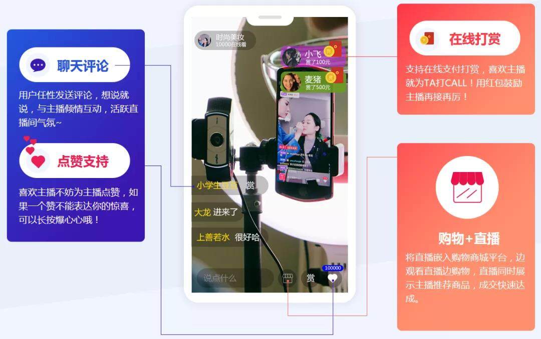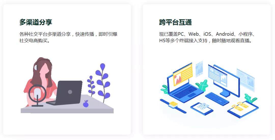 全年红利流量分发达10亿以上,带动销售超过百万笔,直播带货综合营销能力始终位于行业top。智慧云直播构建社交 流量 电商直播生态圈,实现电商直播私域流量变现。