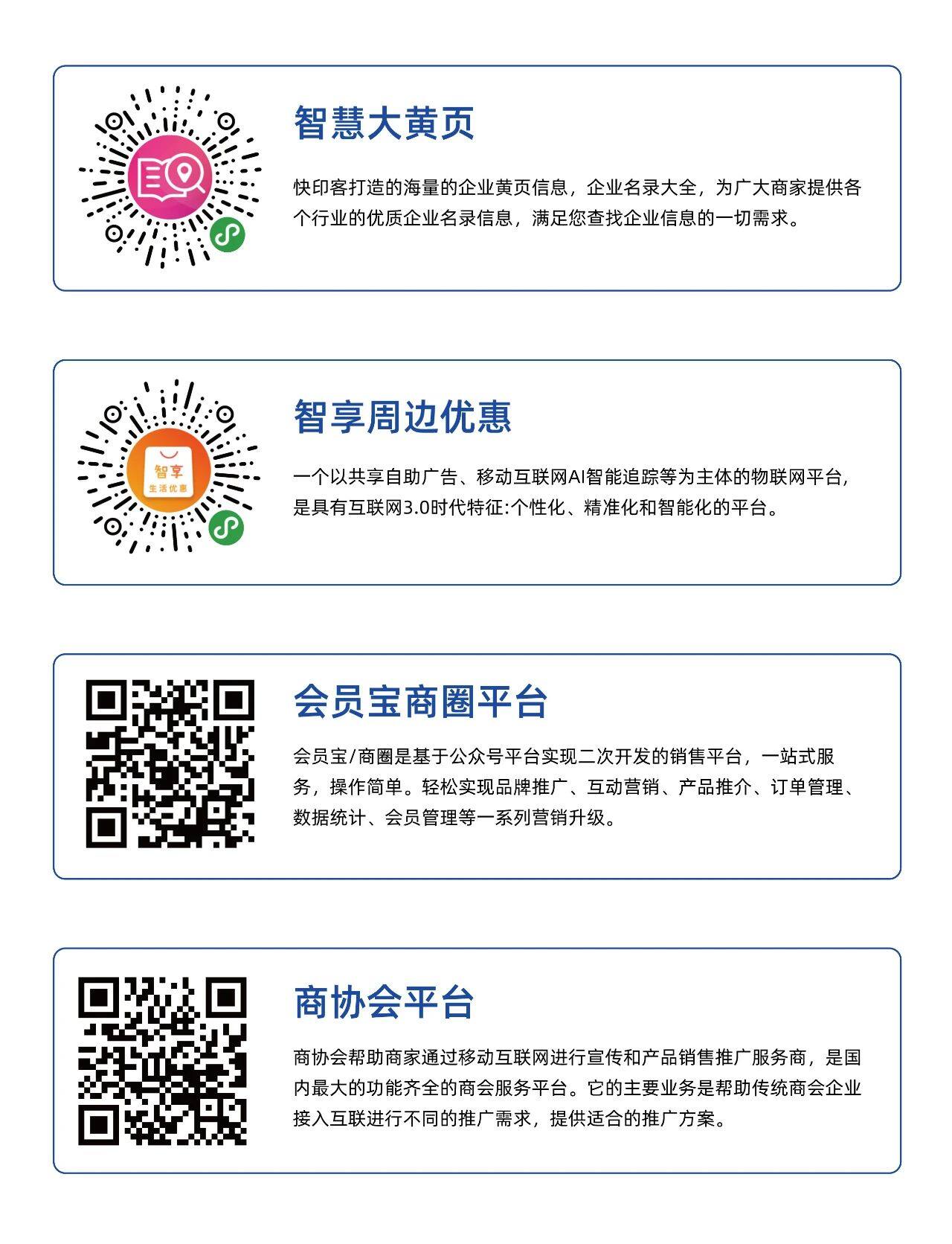 快印客专门打造了一系列适合各行业应用场景的营销凯发娱乐下载的解决方案,帮助各行业快速转型“互联网 ”,为客户带来全景式产品体验。其中包括精准扶贫系统、智慧垃圾分类系统、智慧党建系统、各行业凯发娱乐下载的解决方案等。强大的营销功能,为各行业赋能“互联网 ”,为客户提供有效果、有结果的营销体验型广告宣传。