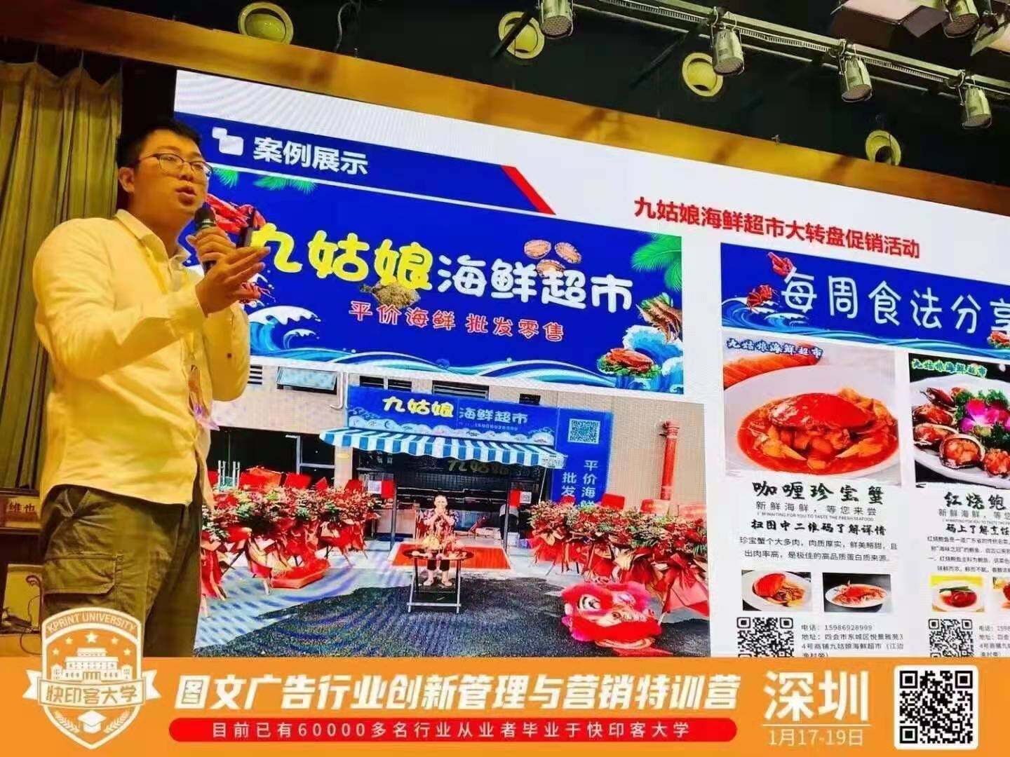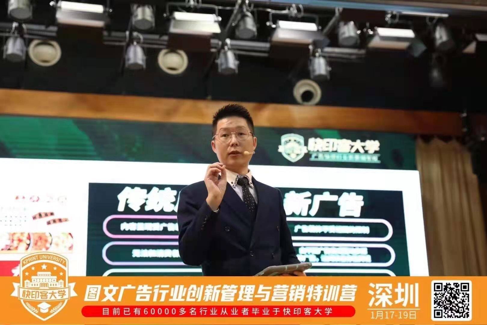 快印客昱景老师正在给大家讲解,各行业广告行业的新财富和商机,让广告物料变成宣传的渠道和移动互联网的入口。