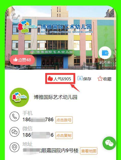 当地幼儿园要招生了,易捷广告万总主动给学校领导推荐智慧名片,分析在传统广告物料上加二维码的好处,比如可以通过智慧名片了解校园环境、师资力量、趣味课程等等,普通单页上完全不能体现这些内容。