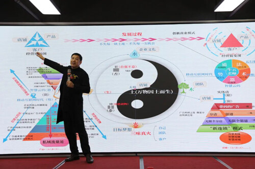 会上,牛云老师对协会的委任和会长的信任、支持表示衷心的感谢,也希望尽自己的努力为深圳市营销协会服务,取得更好的成就。5月12日,也是汶川地震十四周年,牛云老师对殉难者表示哀悼。汶川地震唤醒了中国人对灾难的意识,让活着的人有一种警醒的精神。任何灾难和磨难,最重要的是启迪和唤醒人们的觉醒。在这种情况下,我们作为商人,如何利用专业的营销知识帮助受困的传统企业走出磨难,通过新的营销模式更好的在社会生存下去,这是在现阶段、新历史时期最重要的任务。现在新的形势出现了,新的历史时期使命究竟是什么?结合后疫情时代,它的特色又是什么?深圳市营销协会在新的历史时期能有哪些机会可以大放异彩。5年前,政府提出把精准扶贫转移为乡村振兴。从那时开始,牛云老师花了大量的精力放在乡村振兴最新的理论和营销凯发娱乐下载的解决方案上,为乡村振兴赋能。据了解,腾讯过去是把乡村振兴放在第二、三战线,就在去年下半年,腾讯把乡村振兴板块调到了一级战线,由此可见乡村振兴的重要性。最近发布的国办、中办文件中提到县城经济,归根结底最终的落脚点还是乡村振兴。牛云老师希望能把最新研究的《四维广告营销学》为深圳市营销协会进行赋能,通过深圳市营销协会平台为深圳市200多万传统企业进行技术营销,利用新的商业模式、营销模式,唤醒传统企业在后疫情时代生存的动力和信心。为了帮传统企业更好落地,快印客还设定了“营销策划师“这一角色,致力于变成企业的左膀右臂,变成企业的”卧龙凤雏“。图上代表了整个传统企业发展的过程,从经营原始图到经营裂变图,由店铺、产品、客户组成,如果缺失其中一个元素,整个阵型就会坍塌下来。三角形之所以稳定,是因为三个元素处于平衡阶段。拿今天的传统企业来说,最大的问题:客户,因为客户不能到店消费,导致很多传统企业倒闭。如果把原有的店铺产品、原有的店铺客户变成a c 无限裂变,换句话说,就是从线下到线上,把客户转移到互联网上,客户通过互联网渠道直接到线上的店铺购买产品,实现一系列消费流程。如何从原始图到裂变图?从太极两仪到八卦、虚实阴阳,这是一套完整的理论。万物皆有阴阳,广告物料是“阳“,智慧云码是”阴“。从原始图到裂变图就是换了维度,原始营销是在二维维度,二维到四维的过程,是对竞争对手的降维打击。所以,我们一定要提升认知维度,才能把营销做好,把广告做好。如何品牌化?广告最重要的价值是帮助传统企业创造新的商业模式,传统企业经营一定要品牌化。如果传统企业没有掌握专业的营销知识,单纯靠经营,靠产品,靠团队,这是无法打造品牌标准的。如何对传统企业进行品牌赋能,对传统连锁进行维度升级的认知,这也是深圳市营销协会所研究的重点内容。随着中央“一号文件”的出台,国家大力发展乡村振兴工作,深圳市营销协会愿尽一己之力,为国家的乡村振兴贡献自己的微薄之力,特在协会内部成立“乡村振兴专业委员会”,并授予牛云老师为乡村振兴专业委会员会长。