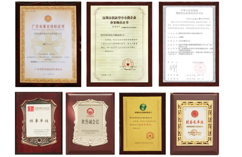连续十年荣获国家高新技术企业证书,是国家双软认证企业、深圳市创新型中小微企业、广东省著名商标企业、深圳市重点电子商务企业、广东省最具社会责任感企业、2019、2020年度连续荣获“广东省守合同重信用企业”、2022年荣获“深圳市2022年高新技术企业培育资助企业”。