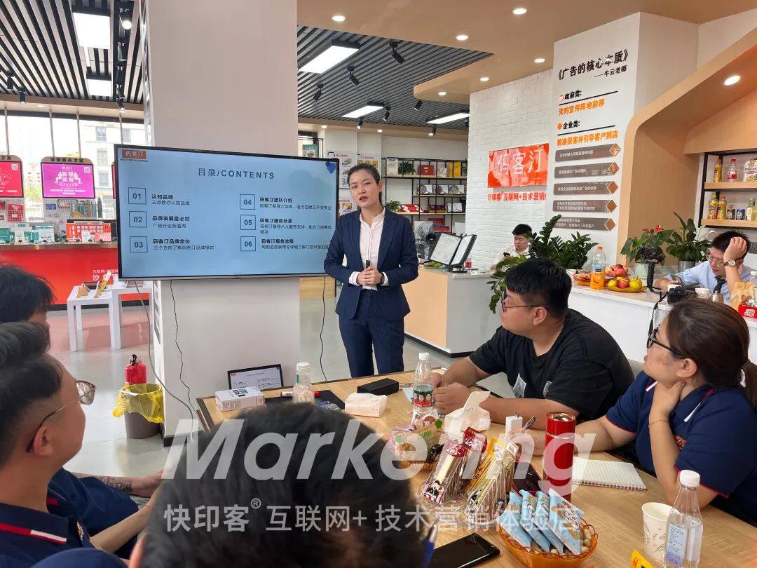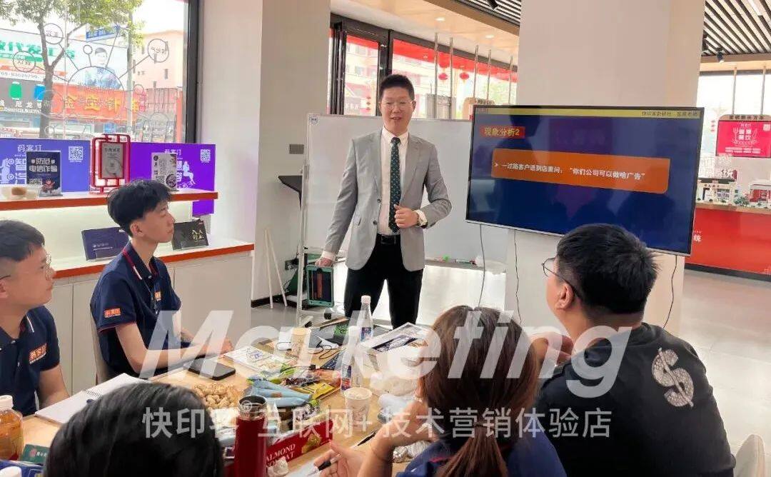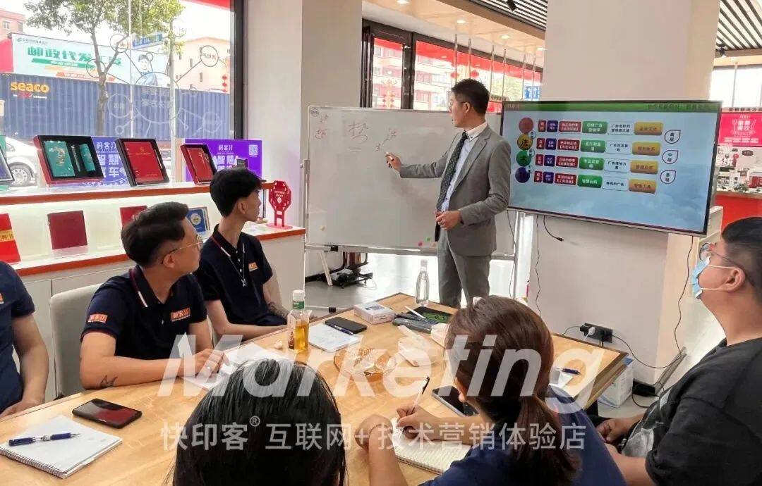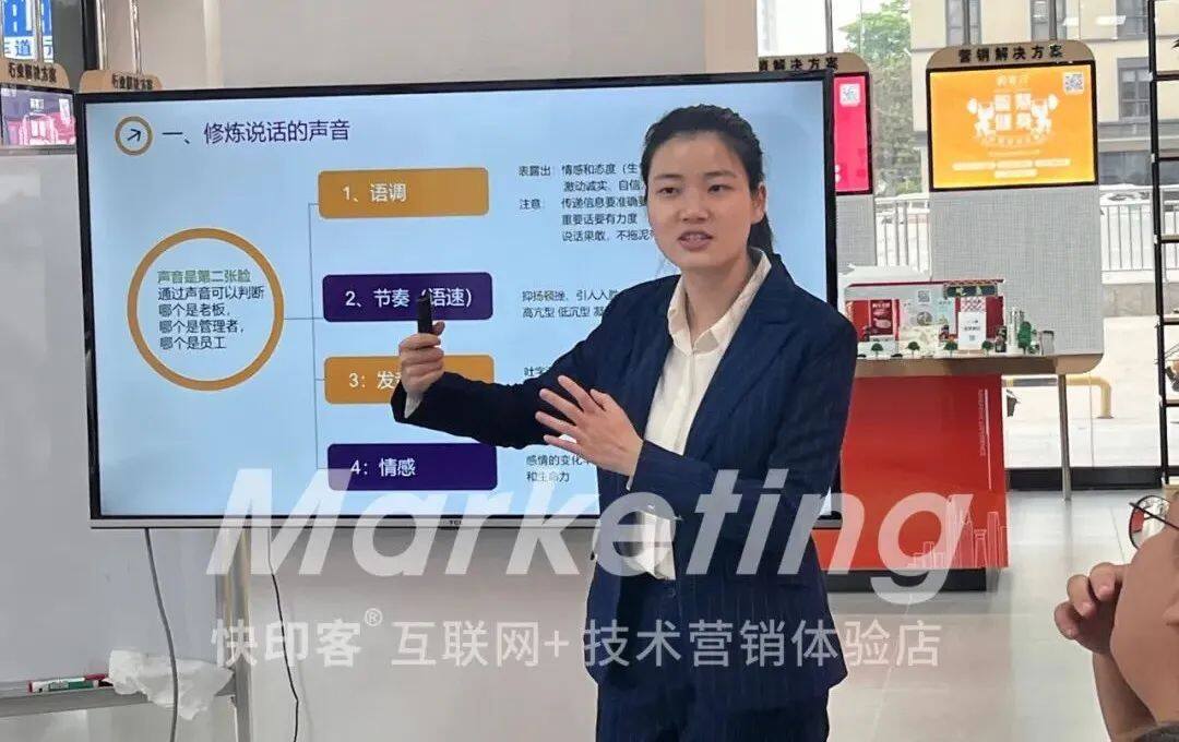 “会说话”对店面营销非常重要,昱景老师强调码客汀的店员一定要能够结合《四维广告营销学》讲清楚产品的功能,通过专业性的描述的话术技巧,让客户从内心接受产品和新广告模式,提升客户成交概率。