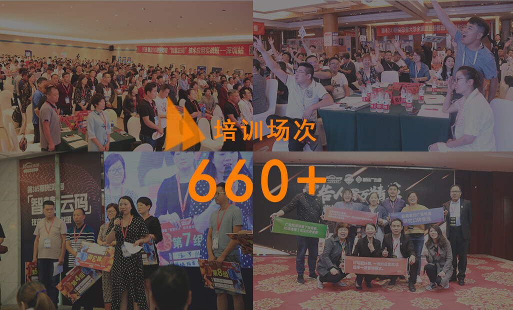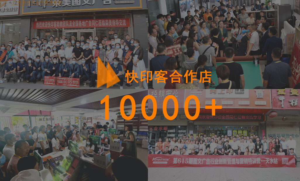 截至2022年10月,成功举办660多场线下培训,培训学员突破100000 ,拥有超过10000 快印客合作店,500 码客汀、保时客品牌授权店,帮助众多广告快印印刷同行迅速实现业绩突破,走出迷茫,找到方向。
