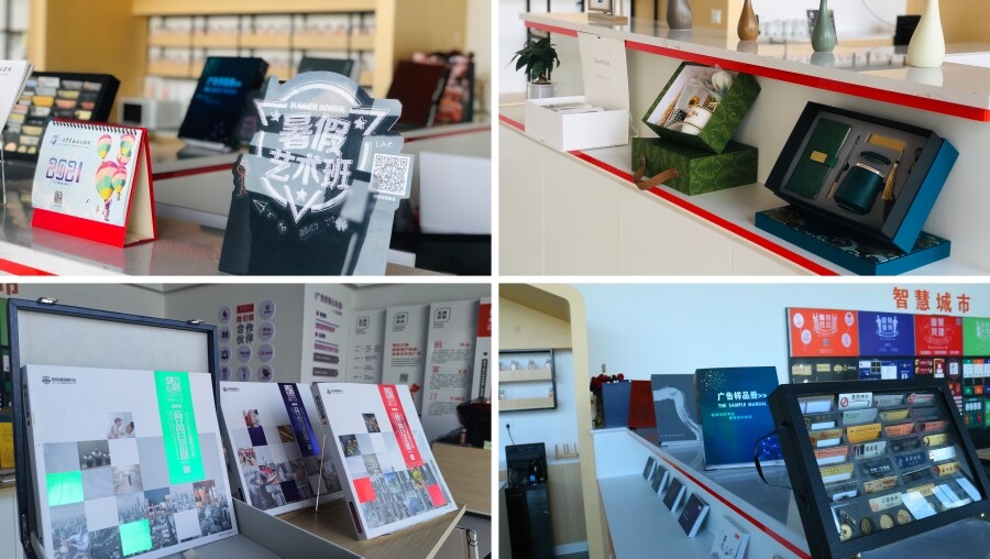 中岛区/广告定制展品区:有企业定制品,上面的产品也都带有营销级别的二维码,具备互动性,客户一旦扫码立马能追踪识别,发起对话,从而具备精准获客功能。