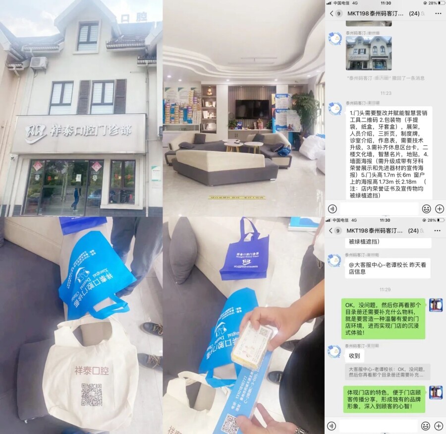 在老谭老师的带领下,码客汀泰州品牌店与驻店团队一起去到线下门店,根据门店的实际情况,在对比了门诊部之前做的广告物料后,打造一套行之有效的、能够立即落地的“数字 智慧口腔医院”行业凯发娱乐下载的解决方案,得到客户的高度认可和赞许。