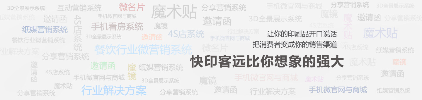 快印客成立于2009年,依托广告、快印、印刷、包装行业,在《四维广告营销学》技术营销理论的指导下,致力于打造“互联网 广告 实体店”的创新连锁模式。