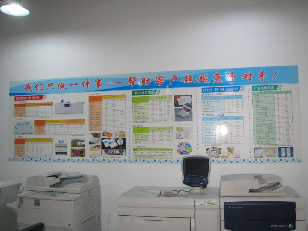很多广告快印门店墙上都会张贴价目表来展示门店能提供的产品、服务以及价格,产品价目表是上门客户快速了解广告店业务和报价的方式。