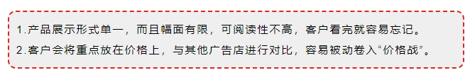 传统的广告店摆放混乱,店面功能区域杂乱无序,很多人进店后感觉这只是一家打印资料、制作横幅的小店,很难让客户产生信任并下单。