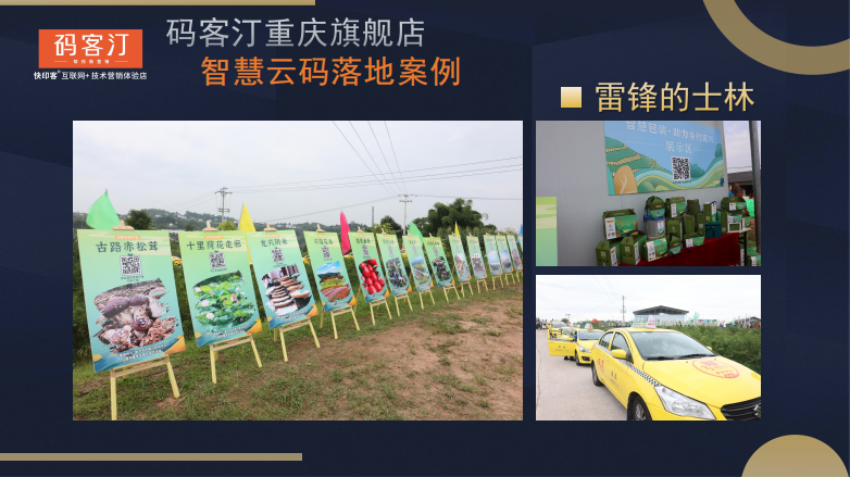 作为落实数字 乡村的先行者,码客汀重庆旗舰店总经理、重庆市广告协会常务理事张晓阳张总,借助新营销理论赋能传统宣传物料,在当地的乡村振兴领域做出了“雷锋的士”活动、本心小农场、农副产品智慧供销平台二维码巨型村牌等数个成功案例。