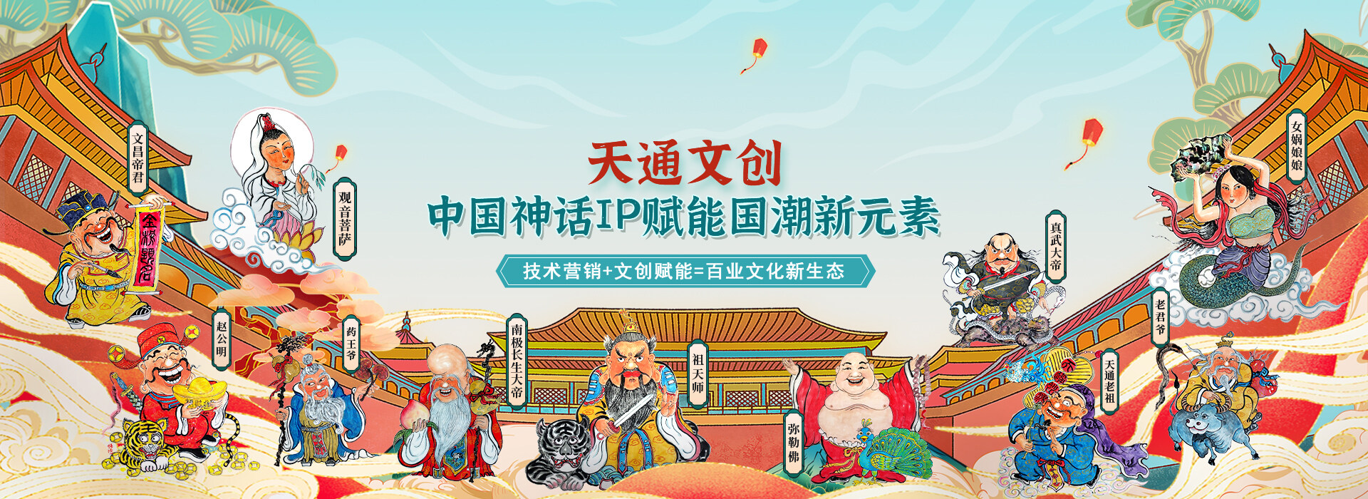 "天通文创"立足中国优秀传统文化,原创了一系列中国圣人先贤以及神话故事当中的圣贤人物ip,并且利用"技术营销 文创赋能=百业文化新生态"的创新模式,将神话人物ip与企业产品完美融合,重新定义文化产业,赋能百业文创新生态——打造百业新文创,重构百业新联通,实现百业文娱化,聚焦百业新时尚,引领中国传统商业进入文化产业新生态时代。
