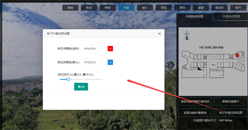 五、沙盘全局设置。可以配置标记点颜色,大小,标记位置优化更准确