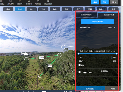 十二、新增“热点显示范围”。(一个场景上添加许多热点,当热点数量过多时,热点之间相互重叠,尤其当画面缩小时或在手机端观看时,造成观看体验不佳)