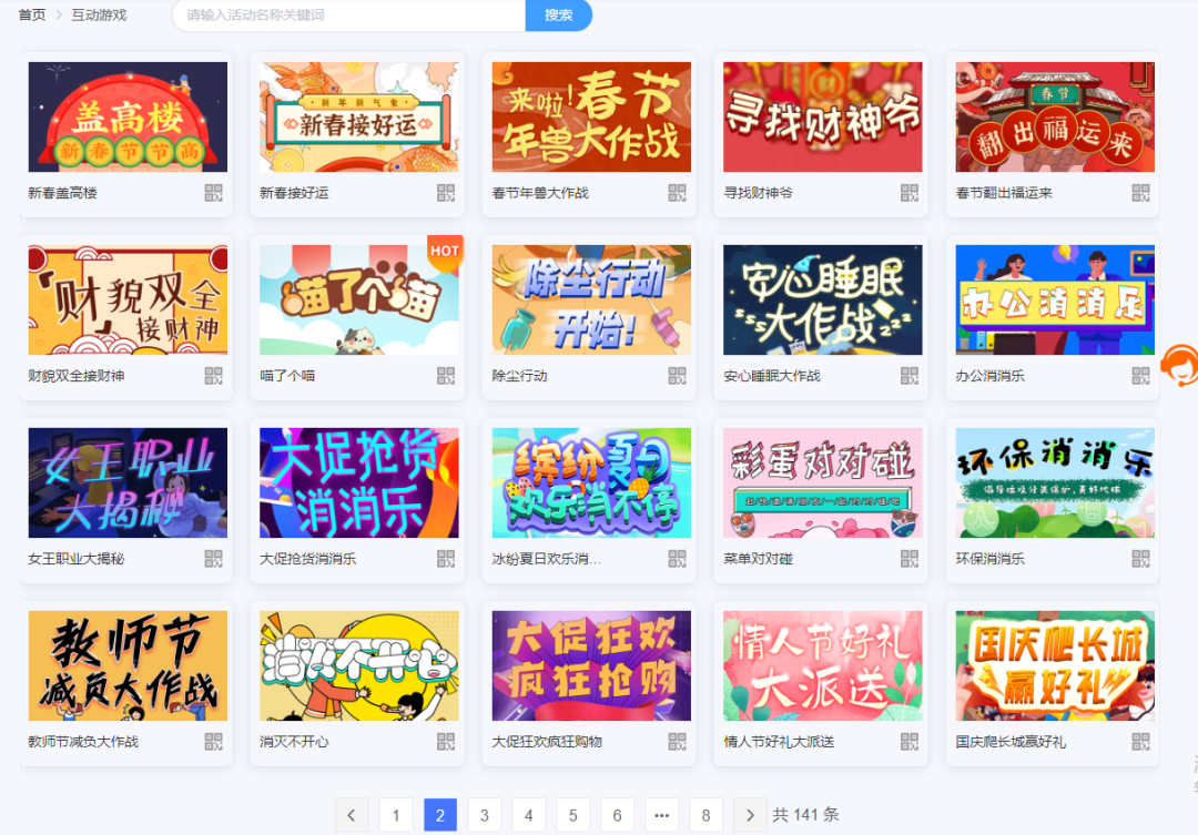 智慧互动互动类游戏不但能帮助客户轻松解决营销难题,建立营销闭环,打通线上线下的渠道,也能帮助客户打造低成本、高效果的活动营销策略,实现精准获客!