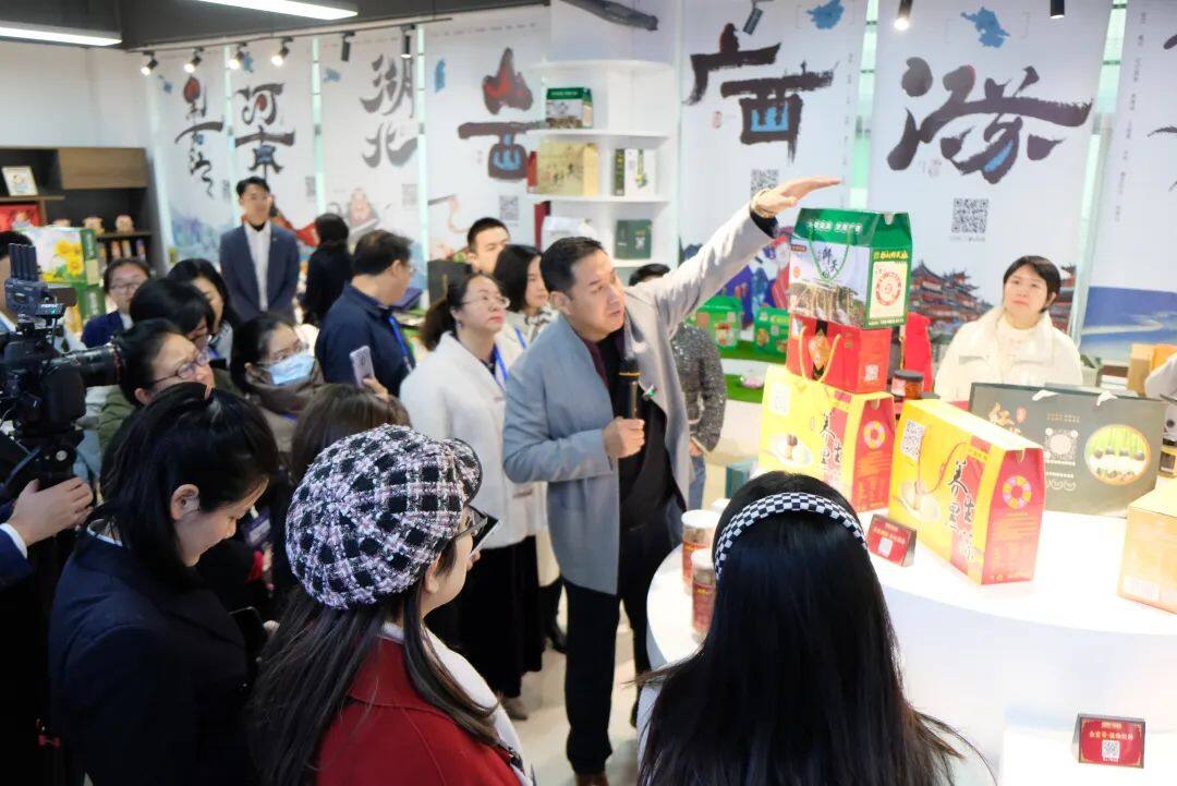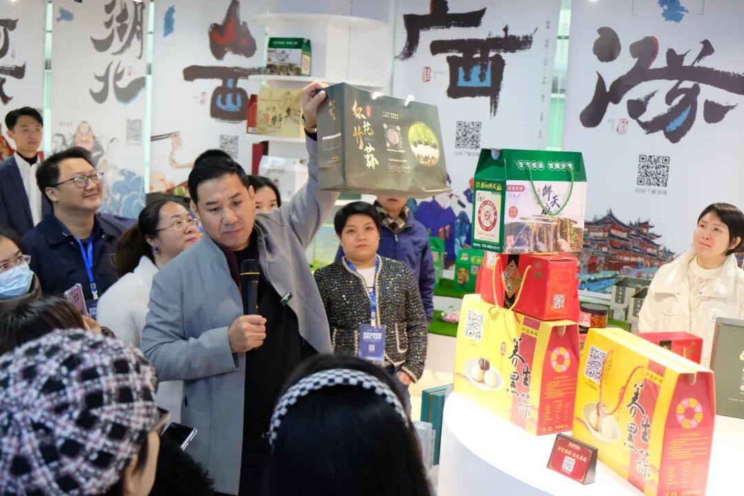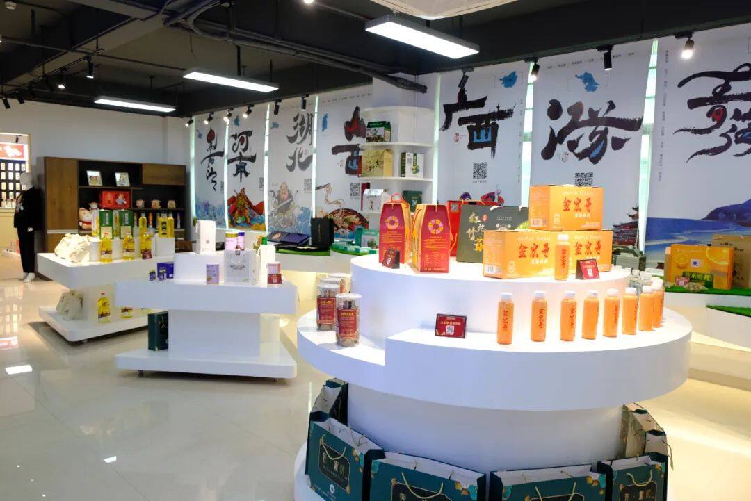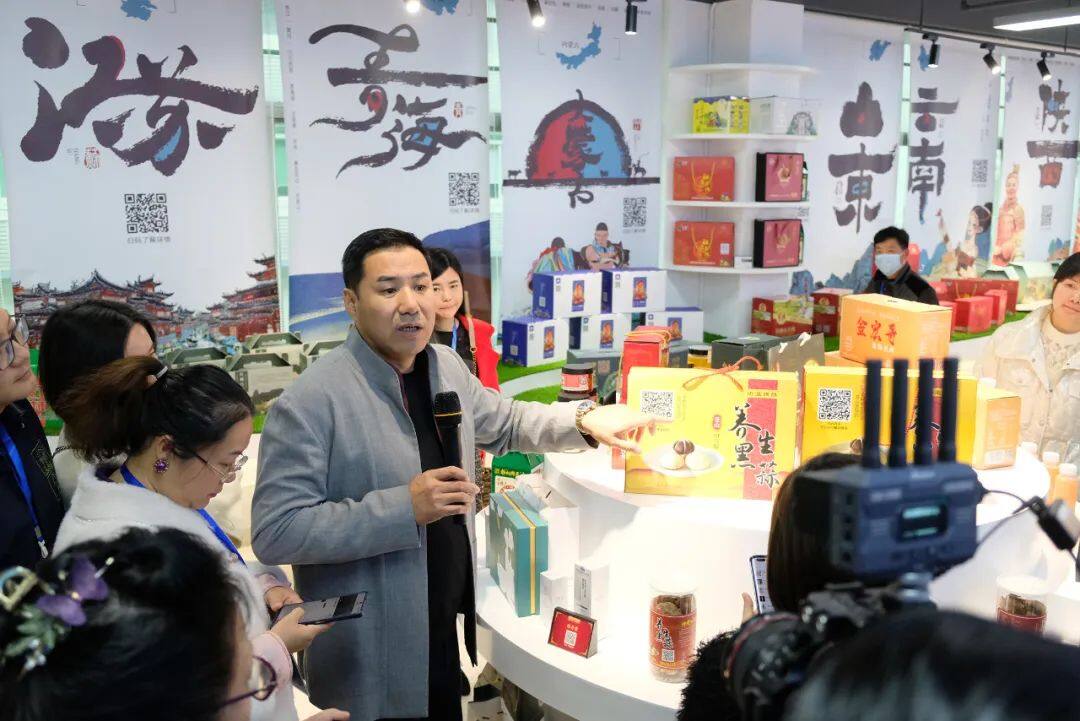 中岛展示台上铺满了琳琅满目的农特产品,有陕西的小米、山西的醋、甘肃的苹果、唐山的唐味甄农、重庆的兰花根、贵州的精制刺梨液、山东的养生黑蒜......每一件都凝结了新广告人的智慧和创新精神,诠释了传统设计与技术营销的完美结合。