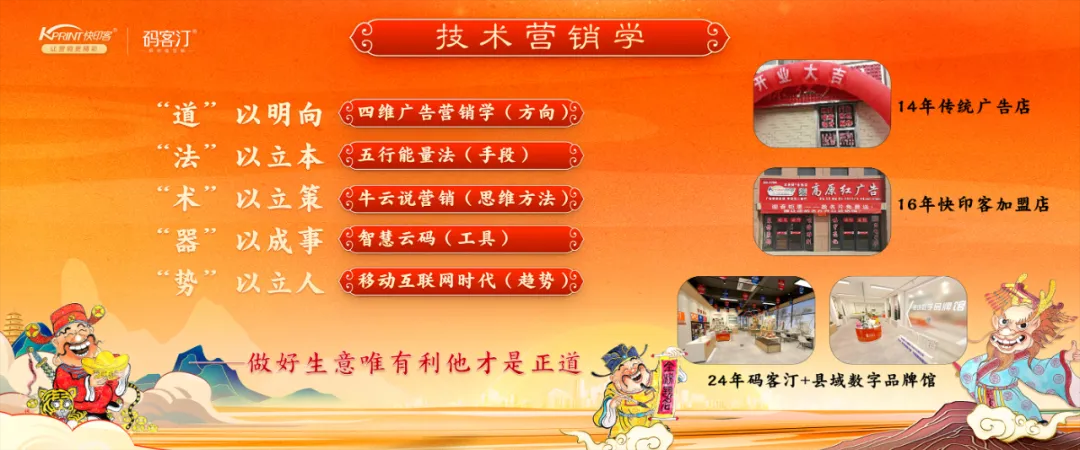 因为技术营销学,因为牛云老师,因为快印客,让我把客户、产品、资源链接到一起,让我在与客户谈单中更有底气、更自信,也带来客户更多后续的合作,让生意进入到一个正向的循环之中,生生不息!