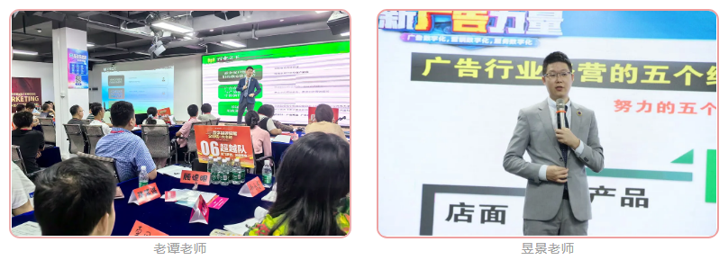 昱景老师则聚焦老客户维护及新客户的开发,传授图文广告店稳定客源的关键策略。同时,他还分享了薪酬绩效设计的思路,助力企业优化激励机制,提升员工积极性与业绩。两位老师的分享内容丰富实用,为广告店的发展提供了宝贵的参考。