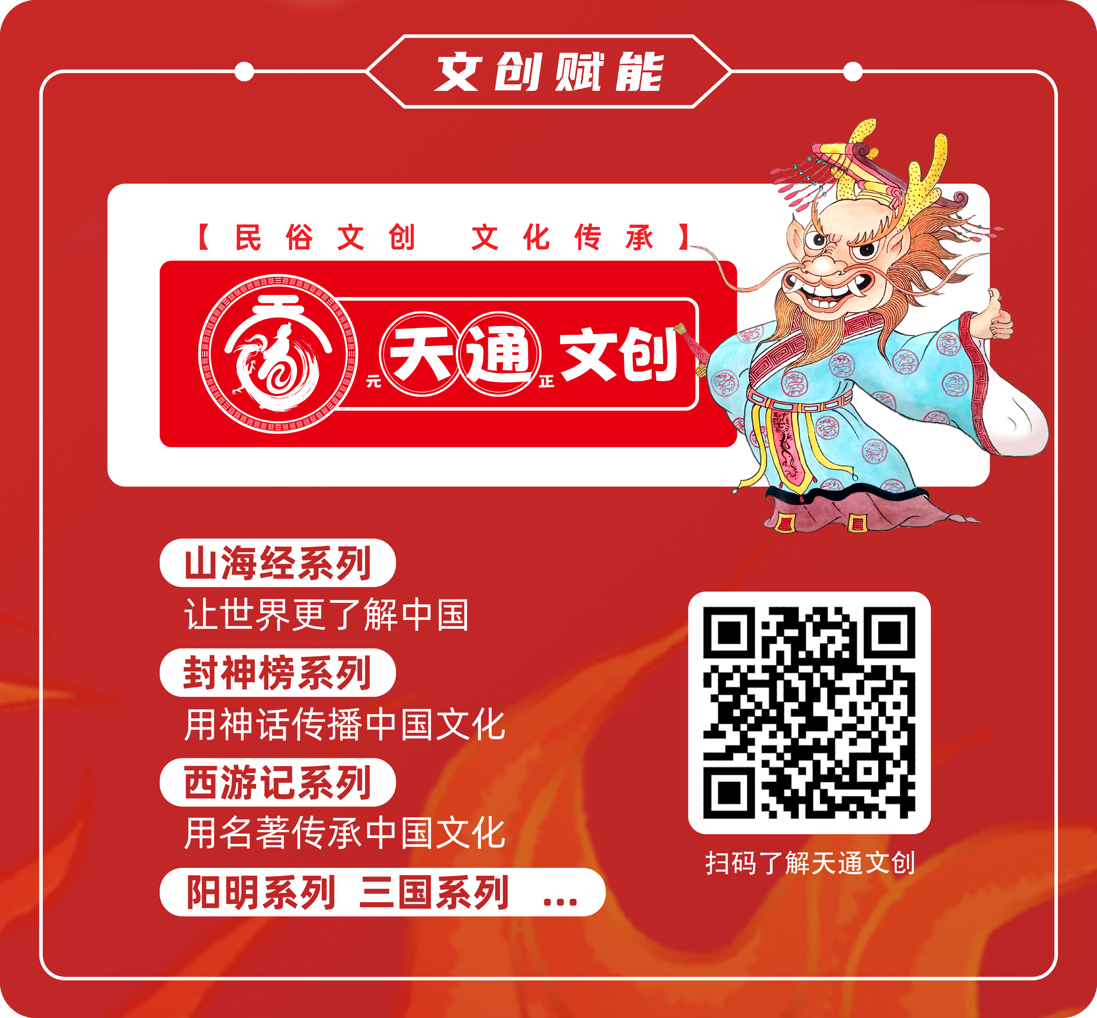 天通文创通过打造山海经、封神榜、西游记等主题系列ip,以民俗科普的形式,推动中国优秀传统文化的传承与创新发展,让世界重新了解中国,并且用中国传统圣贤ip结合技术营销学,赋能百业文化新生态和企业营销的焕新发展。