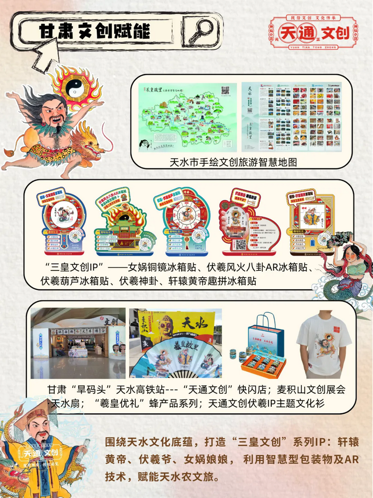 不仅如此,快印客结合天水文化,打造“三皇文创”ip,擦亮伏羲文化、大地湾文化、三国文化等文化品牌,通过弘扬传统文化,将当地的农特产品升级为带有文化色彩的文创产品,比如打造“伏羲故里的大樱桃”概念,进而实现与景区的文创的深度融合,通过“技术营销 文创赋能 渠道赋能”的模式,充分发挥天水的文化地域优势,从而带动天水农文旅融合发展。