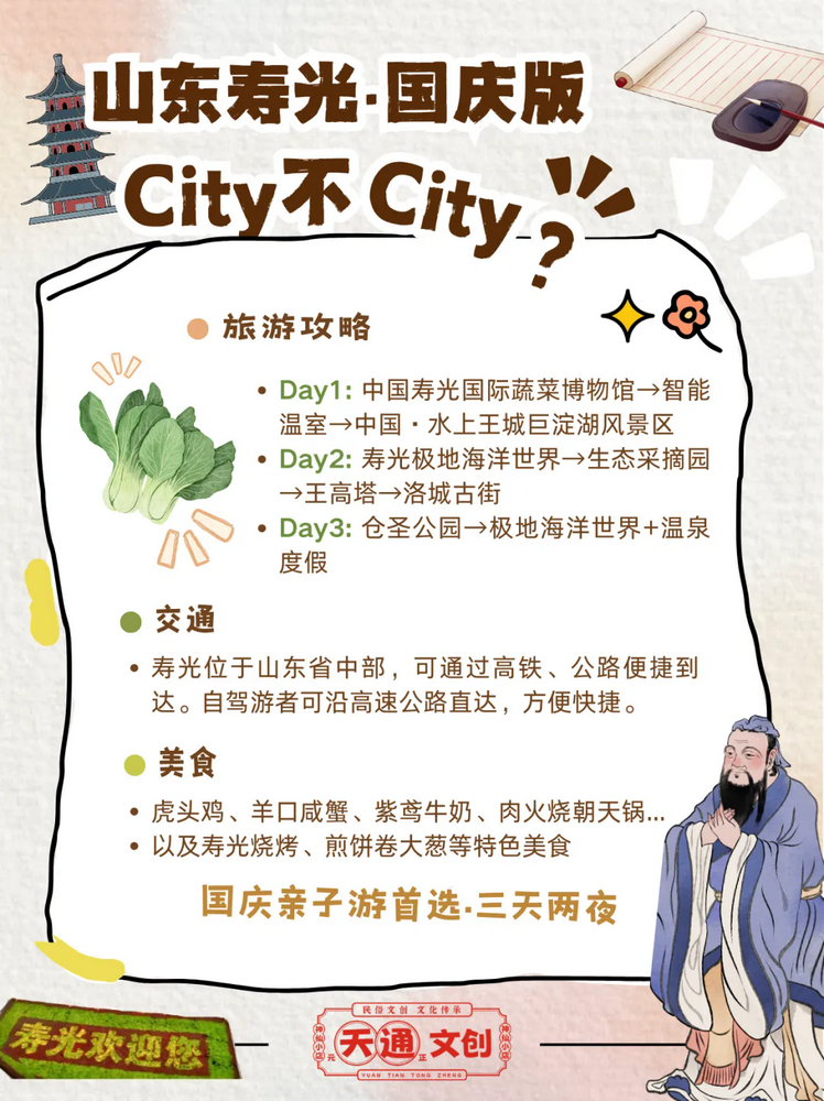 走进蔬菜之乡,生态画卷徐徐展开。寿光不仅是著名的“中国蔬菜之乡”,也是农圣贾思勰、文圣仓颉、盐圣夙沙氏的“三圣故里”,寿光因此被称为“圣城”。在这里不仅能够近距离观察农作物,品尝新鲜蔬菜,还能体验到文化的熏陶。