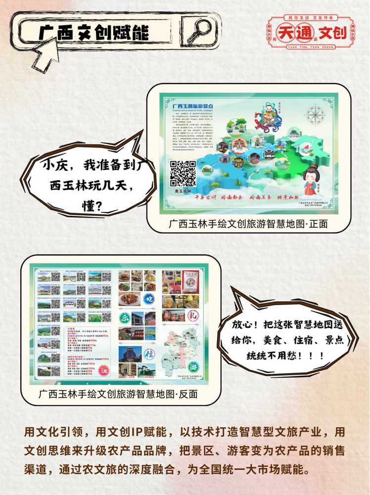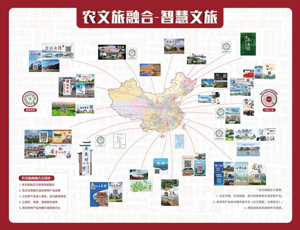 运用技术营销工具,深挖当地特色文化,用文创ip赋能农特产品,开发智慧文创地图,促进农文旅行业的快速融合,作为文化传播的重要载体,借由景区、游客渠道推广。
