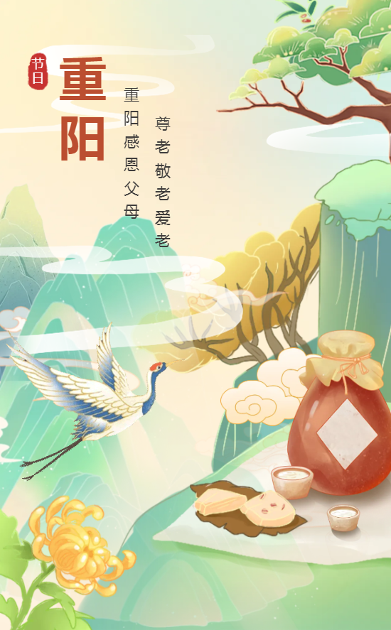 中国传统节日,节期为每年农历九月初九。“九”数在《易经》中为阳数,“九九”两阳数相重,故曰“重阳”;因日与月皆逢九,故又称为“重九”。九九归真,一元肇始,古人认为九九重阳是吉祥的日子。古时民间在重阳节有登高祈福、秋游赏菊、佩插茱萸、拜神祭祖及饮宴祈寿等习俗。传承至今,又添加了敬老等内涵,于重阳之日享宴高会,感恩敬老。