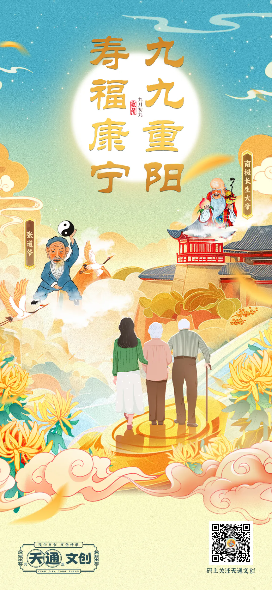 比如伏羲、女娲、南极长生大帝、张道爷等系列神话圣贤ip,象征长寿与福祉,与重阳节祈求长寿的寓意相符合。通过ip赋能文创产品,打造系列手机壳、抱枕帆布袋等文创产品,传递健康祝福,寄托对健康长寿、幸福安康的美好愿景,为传统敬老文化带来新的活力。