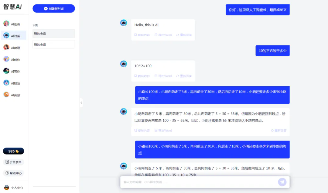 全能ai对话助手,作为你的人工智能伙伴,既能写文案、想点子,又能陪你聊天、答疑解惑。给你工作、学习上提供帮助,长篇文字阅读解析、联网搜索、中英文翻译、代码编写、热点解读等满足你不同的需求。