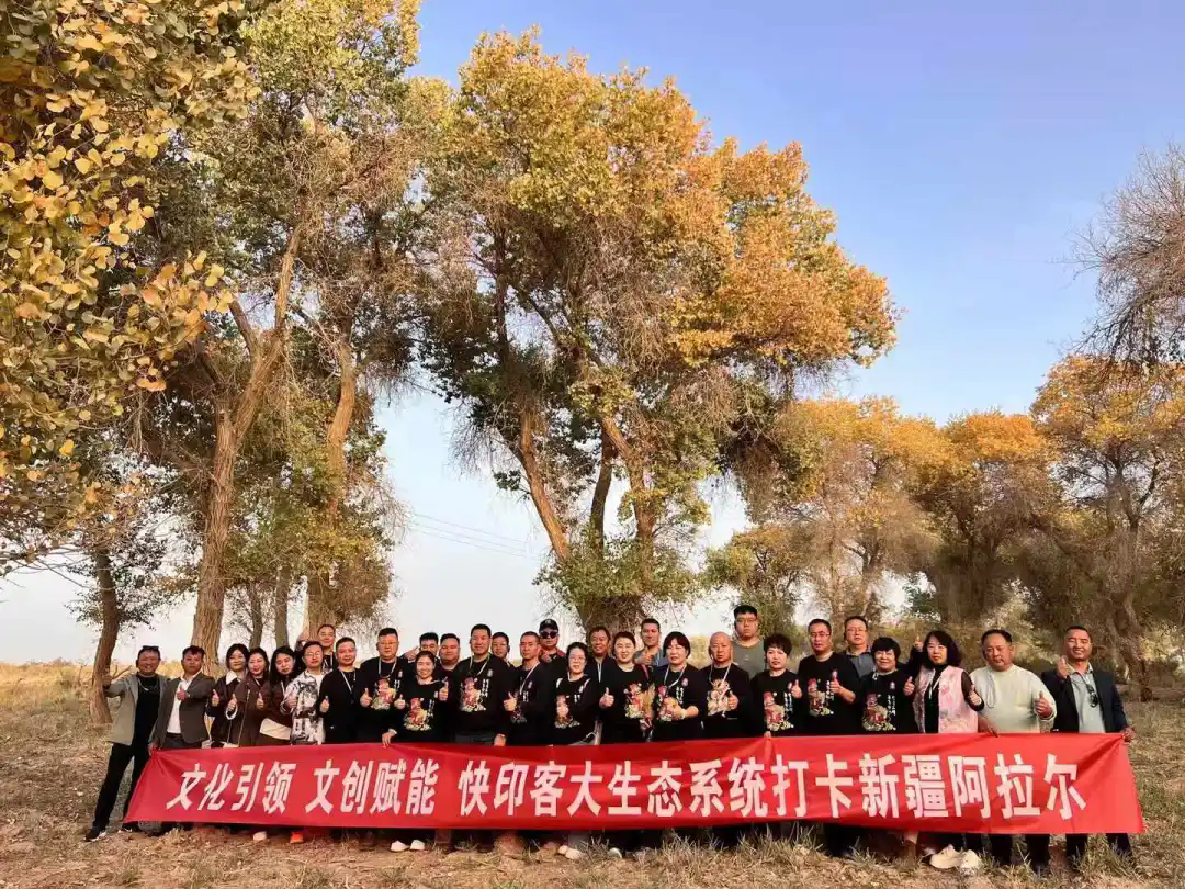 10月14日,正值阿拉尔码客汀店&阿拉尔数字品牌馆开业前夕,牛云老师带队,率领快印客大生态系统的全息品牌营销策划方案班成员一同走进阿拉尔,在阿拉尔千年胡杨林中,为“中国百年老店计划”认养一棵“全息树”。