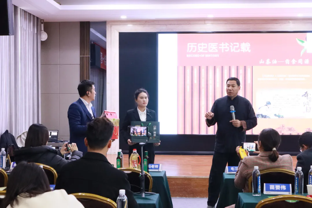 企业座谈环节,企业家们轮番上台,讲述企业的发展、经营现状与遇到的难题,牛云老师一一给予解答与指导。从香芝源山茶油产品的品牌规划、醉仙翁灵鹿黄酒品牌新赛道的探讨、富锶山泉水文化功能的开发到襄阳特产帝乡皇桃从初级农产品售卖到深加工做商品化的转型。
