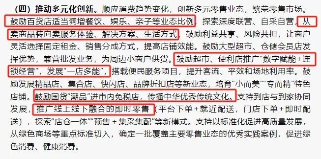 第一,鼓励百货店适当调整餐饮、娱乐、亲子等业态比例;