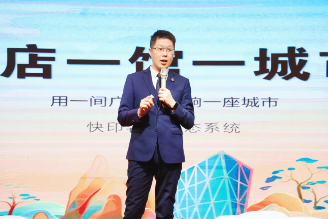 码客汀天水旗舰店尹总分享了公司自 2005 年成立以来的发展历程与变革。在疫情期间遭遇困境后,2021年3月走进快印客课堂,就毅然决然加入快印客。通过坚定追随快印客的理念与模式,店面从传统广告加工厂转型为营销型广告公司,团队经完善培训体系打造后斗志昂扬,在业务上取得诸多突破与成果,如乡村振兴宣传、文明城市标识标牌建设等,收益从几万提升至几百万。依托于快印客大生态圈,参与生态链合作共赢,让门店获得了全新的思路和市场机遇。