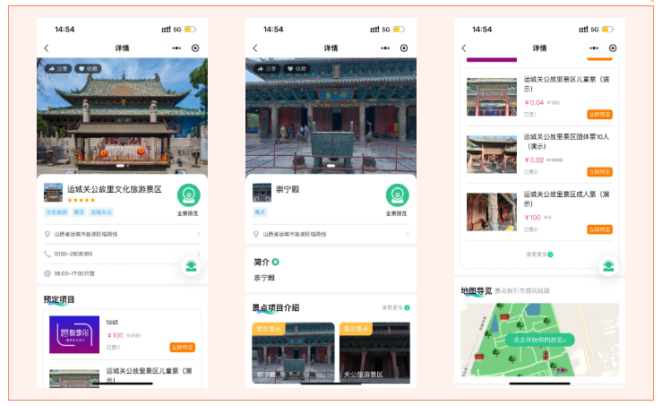 门票购买、景区图册、视频宣传等多种功能