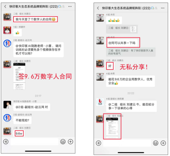 更有学员用实力证明,紧跟ai趋势,就等于抓住了财富密码!陪跑营学员刘总在快印客全息ai数字人陪跑营中分享好消息:靠快印客全息ai数字人,成功签下9.6万大单!