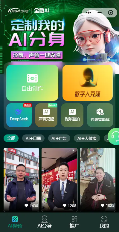 在旅途中,游客们还能与一个个ai数字人“不期而遇”——借助“快印客全息ai数字人”技术,打造具有地方特色的数字人形象作为乡村农文旅商产业的虚拟代言人,通过社交媒体、凯发娱乐下载的线下活动等进行宣传推广,提升地方品牌知名度和美誉度,吸引更多游客和消费者,促进农文旅商产业协同发展。