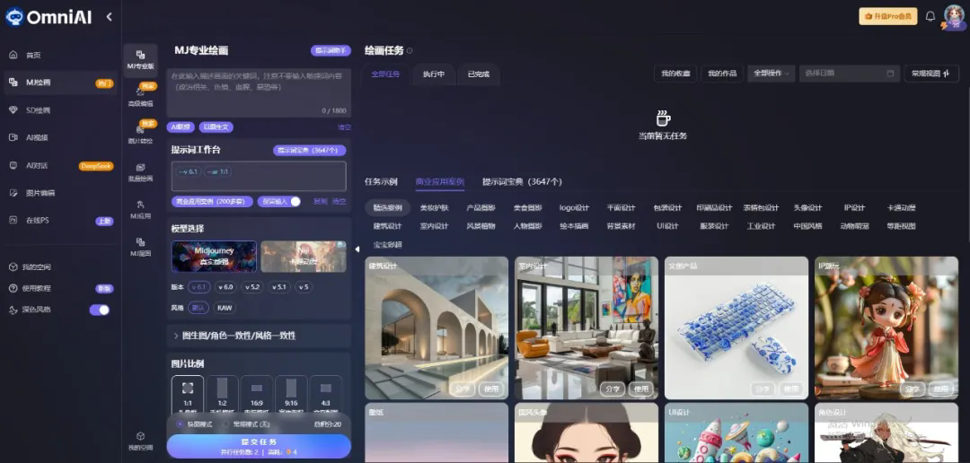 音集成midjourney绘图、stable diffusion、ai视频生成等前沿工具,支持文生图、图生视频、智能排版等,满足广告、影视、电商等多行业创意需求
