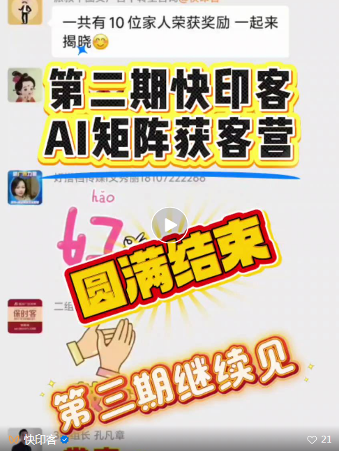 前两期快印客大生态ai矩阵获客营学员已交出了亮眼成绩单!多家企业成功落地ai获客方案,90%学员实现业绩增长突破!现在,属于你的ai时代机遇来了——第三期快印客大生态ai矩阵获客营将于10号(明天)正式启动!
